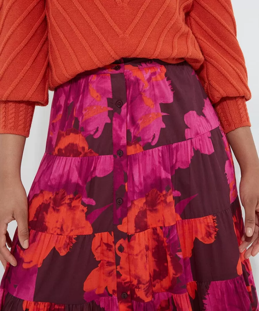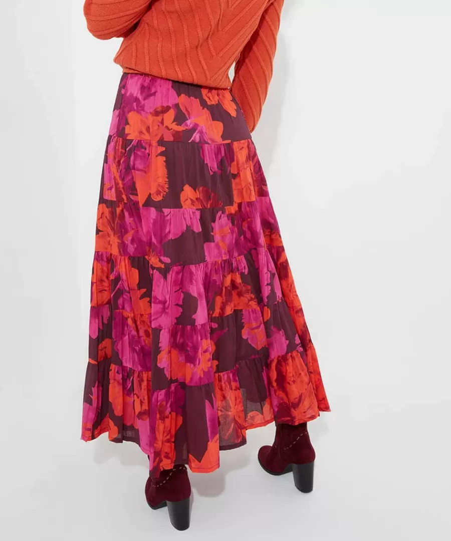 Bring warm florals into winter with this gorgeous maxi skirt. The perfect partner for knee-high boots, its tiered seams create a flattering, flowy look so you can swish through the season. Just the thing to brighten a dull winter day, one glance will show your vibrant personality, however you style it.